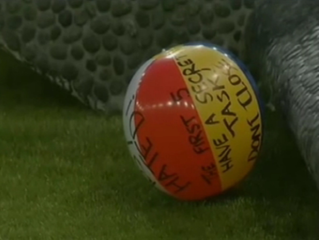 *Hilariously, they all walk into the kitchen utterly oblivious to the beach ball's existence directly beside the door they