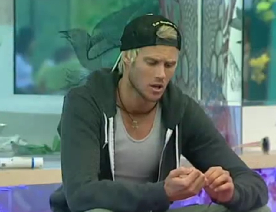 11.50am, some of the HM's are in the living room.. Ben likes honey-glazed pork and Nathan confirms that on the menu for dinner there is honey-glazed pasta. Sunshine asks him to make sure she doesn't have any and yaks on about how she can't have honey. John either cannot comprehend why this is even knowing she is a vegan, or he merely felt like yanking Sunshine's chain!!
