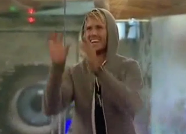 Sunshine is sneaking around the closet.. up to some sort of high jinks as she keeps checking the coast is clear! She comes out of the bedroom to collect some clothes from the living room then back into the bedroom to whisper to Ben. He asks her for a favour to make him a drink of water but he's then called to the Diary room.