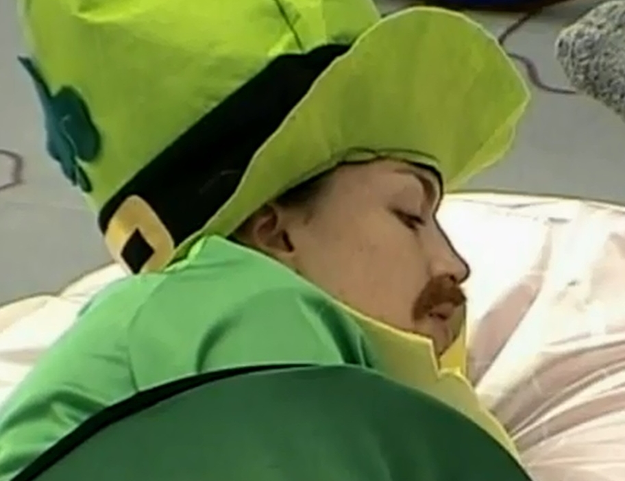 Cabby (Shabby and Caoimhe) are whispering in bed; Shabs says for Caoimhe not to be scared but Kiev finds it hard not to be. Shabby considers it to be a bit of a b*llocks situation as she never wanted to be up at the same time as her chum.