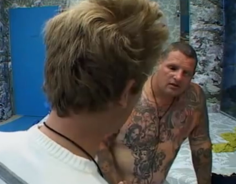 Dave would cheerfully strangle Ben for not chipping in as they all have to and Ben hadn't done squat last night! As is his tendency, Ben digs his heels in and babbles his plethora of excuses that he's only just woken up and wants to lie in the sun for a few minutes 'and then I'll do what you want.' Benny doesn't want to be stressed out or for his friend to be a b*tch to him so Davey puts a supportive arm around him, when really everyone is ready to go ghetto on his heiney!