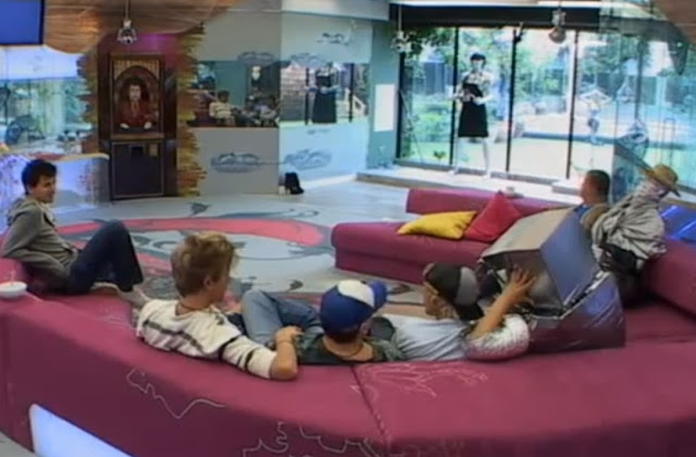 They rejoice in Big Brobot's announcement that hot water has now been restored 'for goodness sake, stop discussing nominations!' Immediately after it starts to play back sound bites from the HM's stay in the house - firstly Steve saying that sometimes he still can't believe he's in there. A phone ringing is imitated and a recorded message from Dave's wife, Donna is piped out as she wishes him a Happy Anniversary. As they usually celebrate with a curry, she's arranged with Big Brobot for him to have a steaming vindaloo with him tonight. Monky is overcome with emotion.